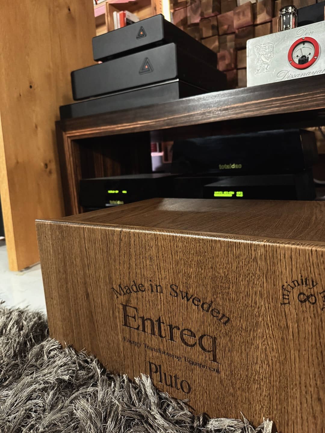 Questa prova con Entreq Pluto è stata impostata in modo molto pratico, quasi automatico: sequenzialmente, adoperando i tre Eartha Olympus per capire dove fosse più significativo usarli. Ho anche provato altri cavi di messa a terra di altri brand, ma il risultato non era paragonabile agli Eartha Olympus. La differenza era troppo grande; per cui sono mestamente tornato sulla via del cotone e dell’argento, usando con parsimonia questi tre cavi e desiderandone un quarto, in arrivo.